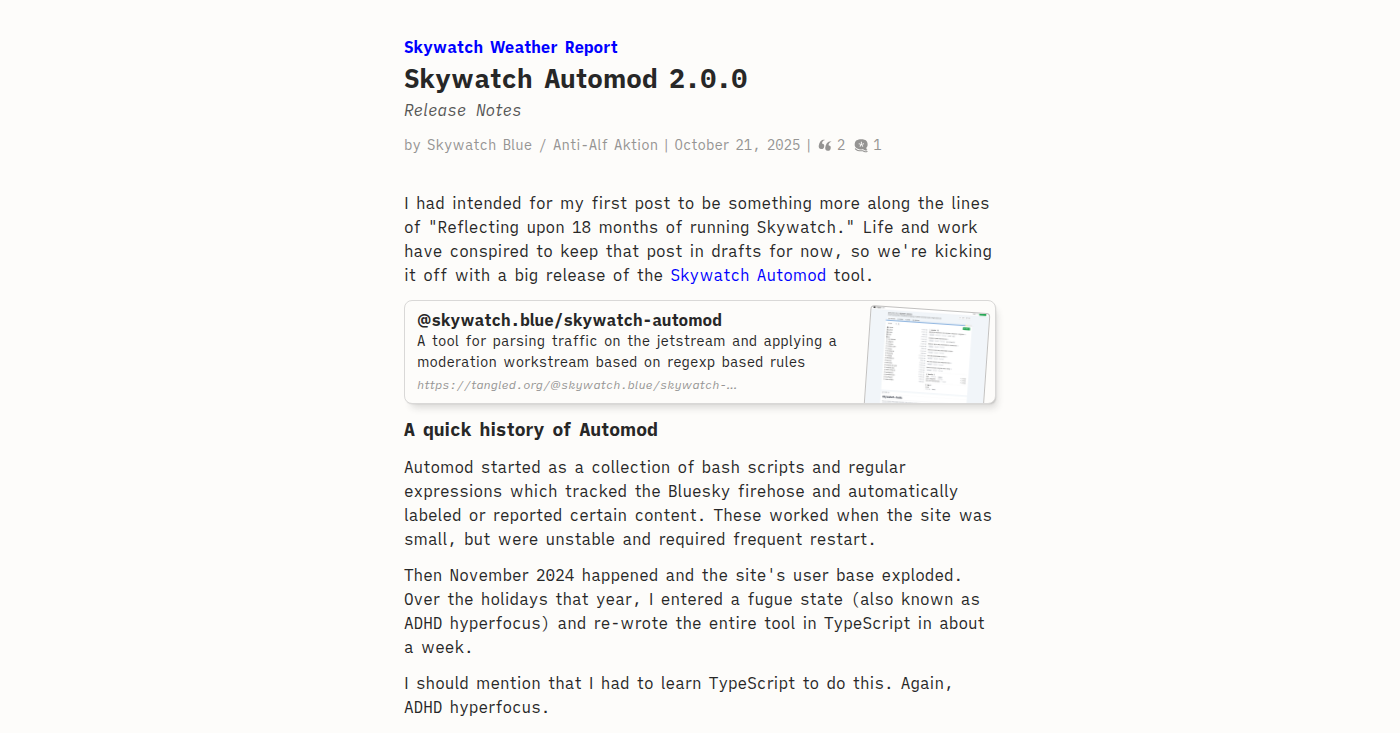 Bluesky Directory Newsletter Bluesky currently has over 40M users320K starter packs, 105K feeds & 300K lists 40 Million Accounts https://bsky.app/profile/bsky.app/post/3m4j4iy4oek2d On Halloween, Bluesky passed 40 million accounts. Whilst growth, has slowed, it continues on a steady and meaningful pace. Building Healthier Social Media On the same day, the Bluesky Team provided updates on its work to build a place for "better conversations, not just louder ones." This includes adding dislikes...